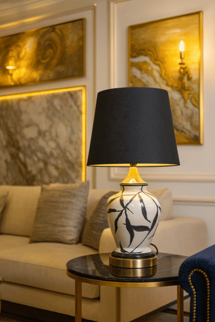 Black Leaves Ceramic Table Lamp (Pair)
